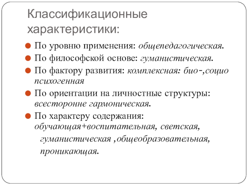 Слайд 16Классификационные характеристики: