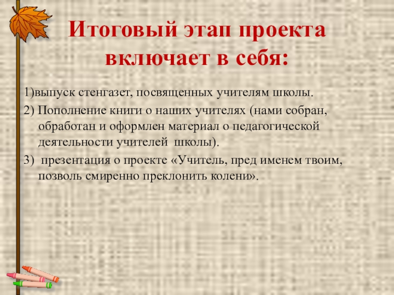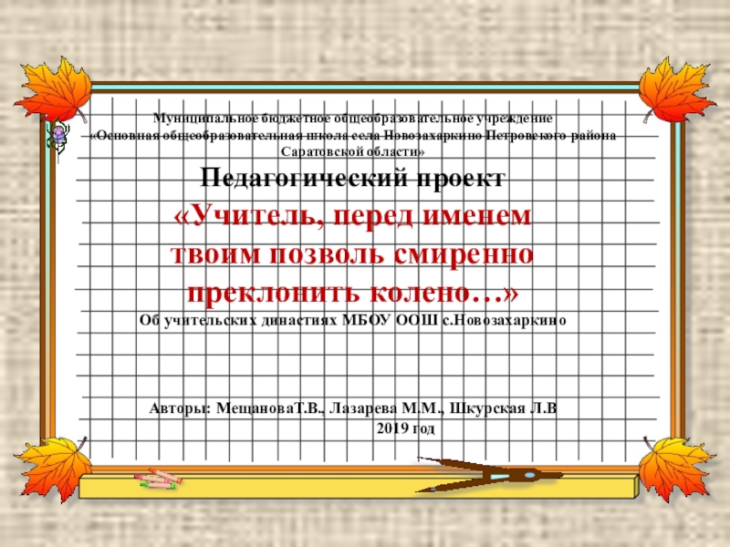 3) презентация о проекте «Учитель, пред именем твоим, позволь смиренно преклонить колени».