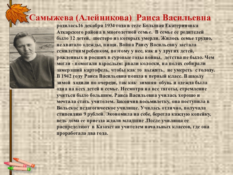 Слайд 20 Самыжева (Алейникова) Раиса Васильевна