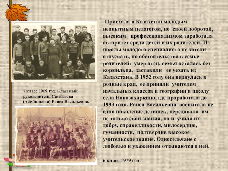 Слайд 21 Приехала в Казахстан молодым неопытным педагогом, но своей добротой, высоким