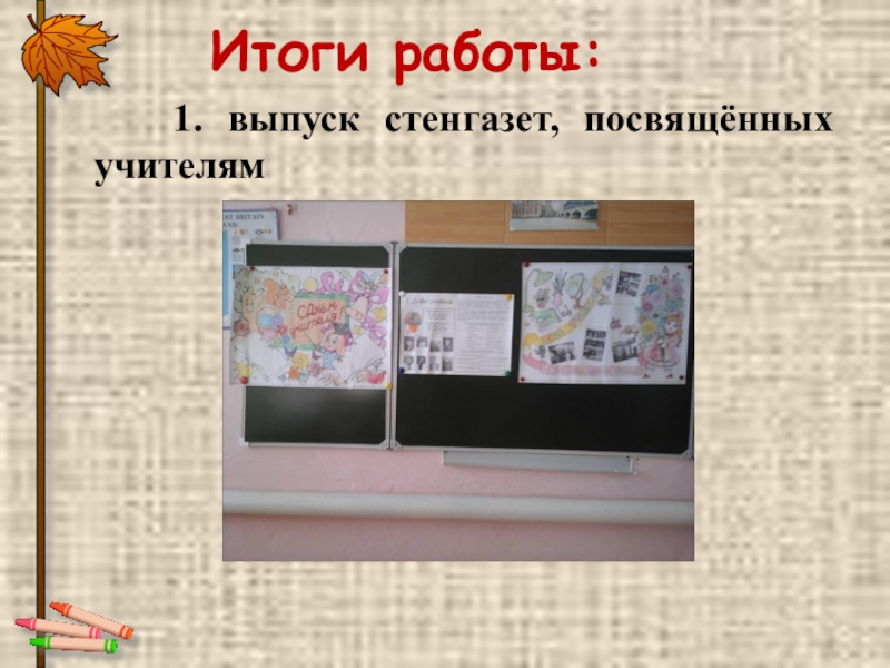 Слайд 30 1. выпуск стенгазет, посвящённых учителям