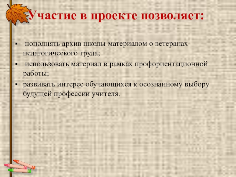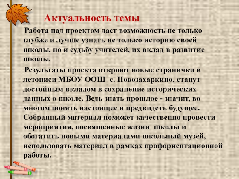 проектом даст возможность не только глубже и лучше узнать не только историю своей школы, но и судьбу учителей, их вклад в развитие школы.