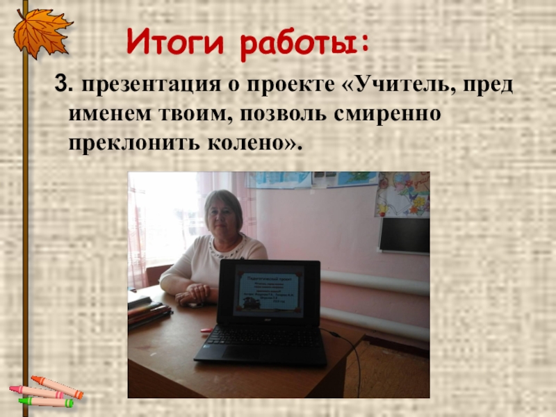 Слайд 32 3. презентация о проекте «Учитель, пред именем твоим, позволь смиренно