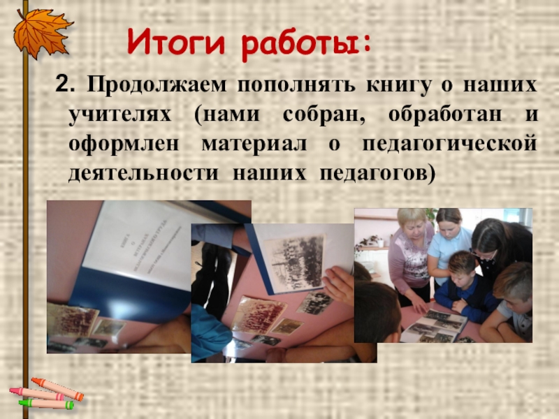 Слайд 31 2. Продолжаем пополнять книгу о наших учителях (нами собран, обработан