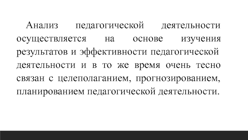 Слайд 11 Анализ педагогической деятельности осуществляется на основе изучения результатов и эффективности