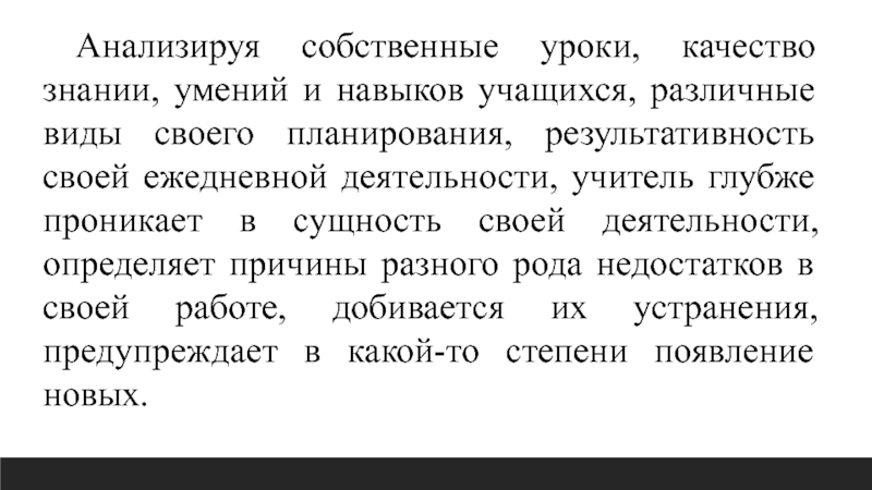 Слайд 9 Анализируя собственные уроки, качество знании, умений и навыков учащихся, различные виды