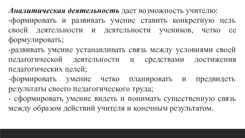 Слайд 8Аналитическая деятельность дает возможность учителю: