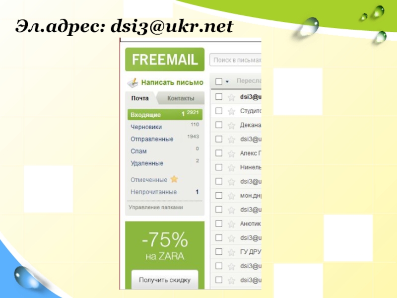 Слайд 29Эл.адрес: dsi3@ukr.net