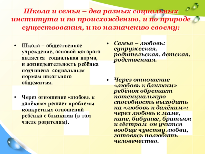 Слайд 13Школа и семья – два разных социальных института и по происхождению,