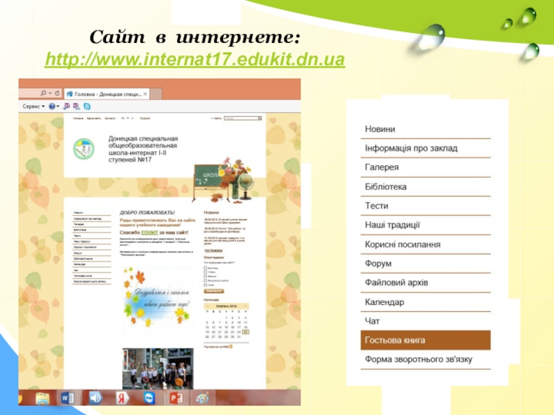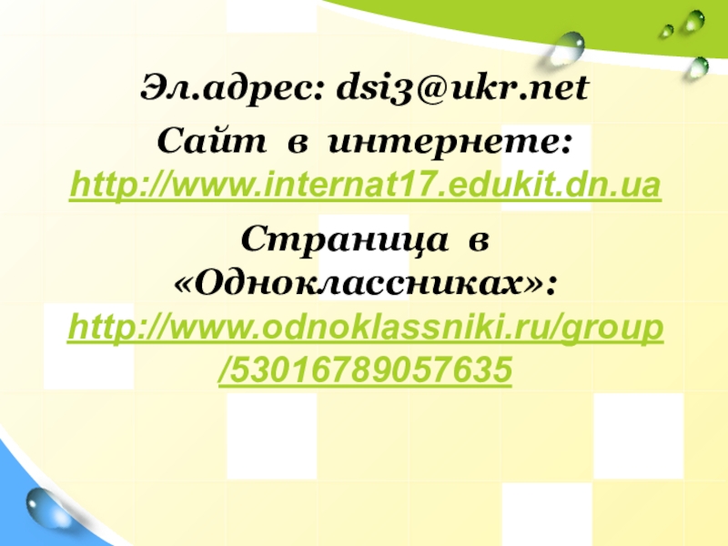 Слайд 31Сайт в интернете: http://www.internat17.edukit.dn.ua