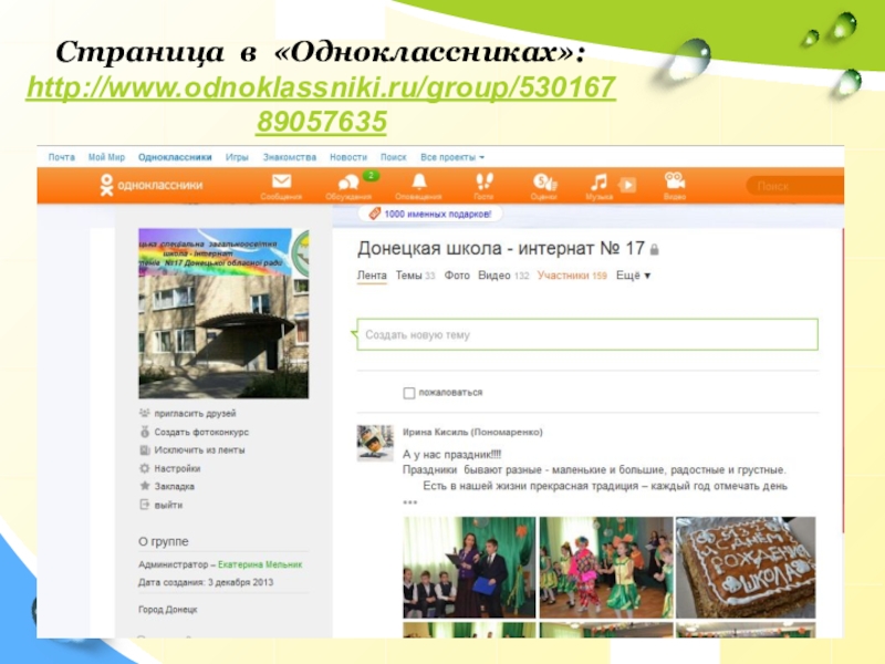 Слайд 32Страница в «Одноклассниках»: http://www.odnoklassniki.ru/group/53016789057635