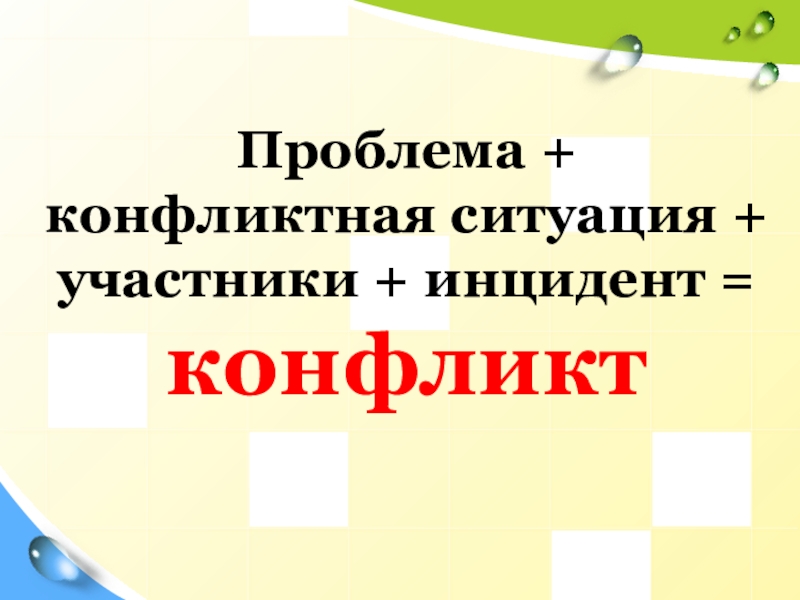 Слайд 36Проблема + конфликтная ситуация + участники + инцидент = конфликт