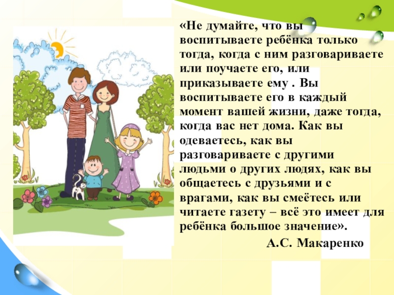 Слайд 6 «Не думайте, что вы воспитываете ребёнка только тогда, когда