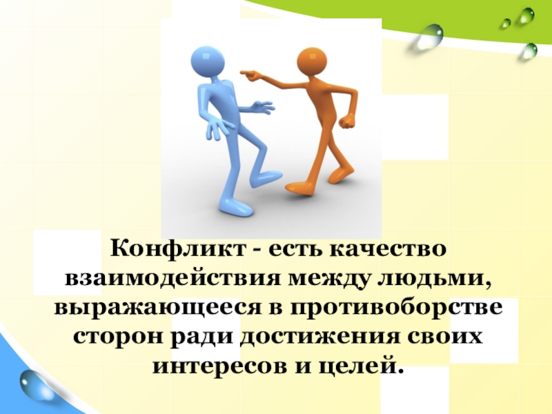 Слайд 35Конфликт - есть качество взаимодействия между людьми, выражающееся в противоборстве сторон