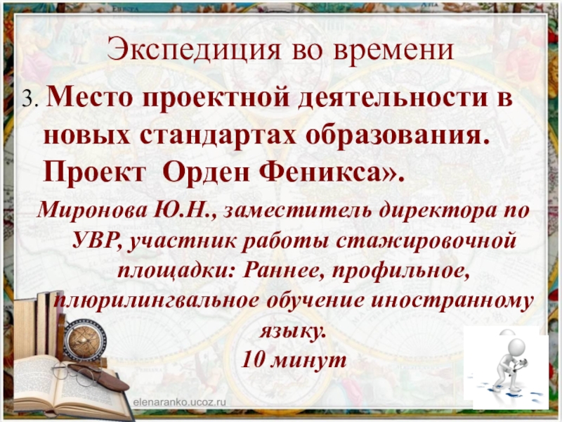 Миронова Ю.Н., заместитель директора по УВР, участник работы стажировочной площадки: Раннее, профильное, плюрилингвальное обучение иностранному языку. 10 минут