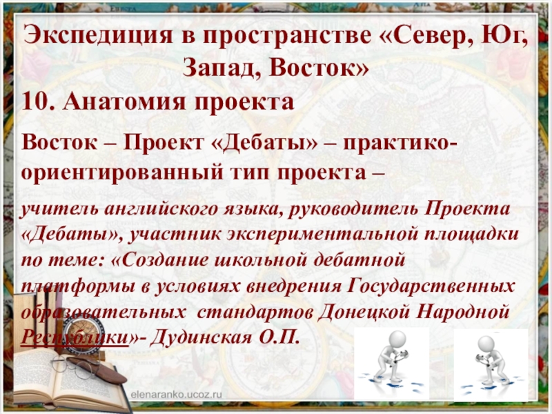 учитель английского языка, руководитель Проекта «Дебаты», участник экспериментальной площадки по теме: «Создание школьной дебатной платформы в условиях внедрения Государственных образовательных стандартов Донецкой Народной Республики»- Дудинская О.П.