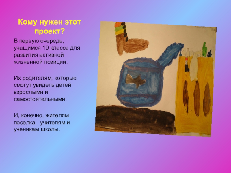Их родителям, которые смогут увидеть детей взрослыми и самостоятельными.