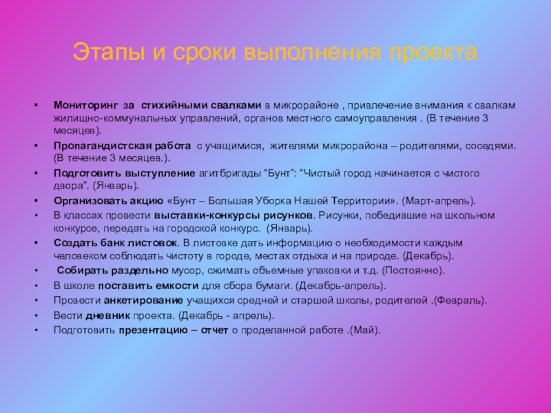 привлечение внимания к свалкам жилищно-коммунальных управлений, органов местного самоуправления . (В течение 3 месяцев).