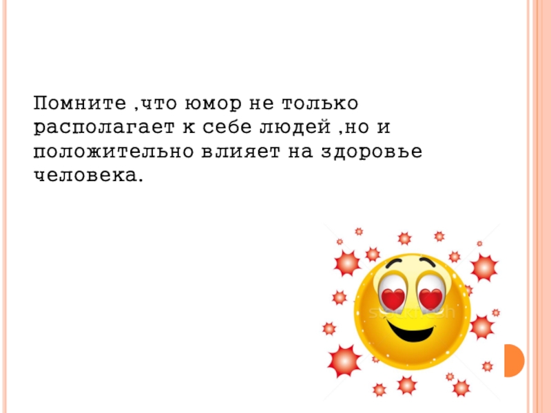 Помните ,что юмор не только располагает к себе людей ,но и положительно влияет на здоровье человека.