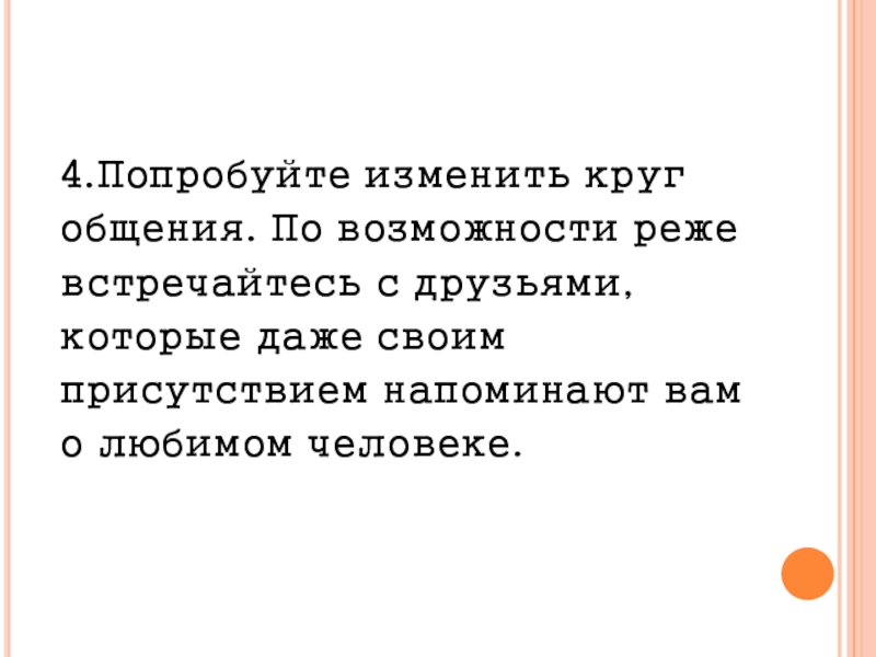 4.Попробуйте изменить круг общения. По возможности реже встречайтесь с друзьями, которые даже своим присутствием напоминают вам о