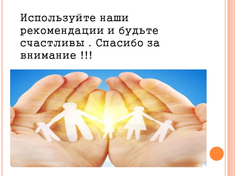 Слайд 21 Используйте наши рекомендации и будьте счастливы . Спасибо за внимание !!!