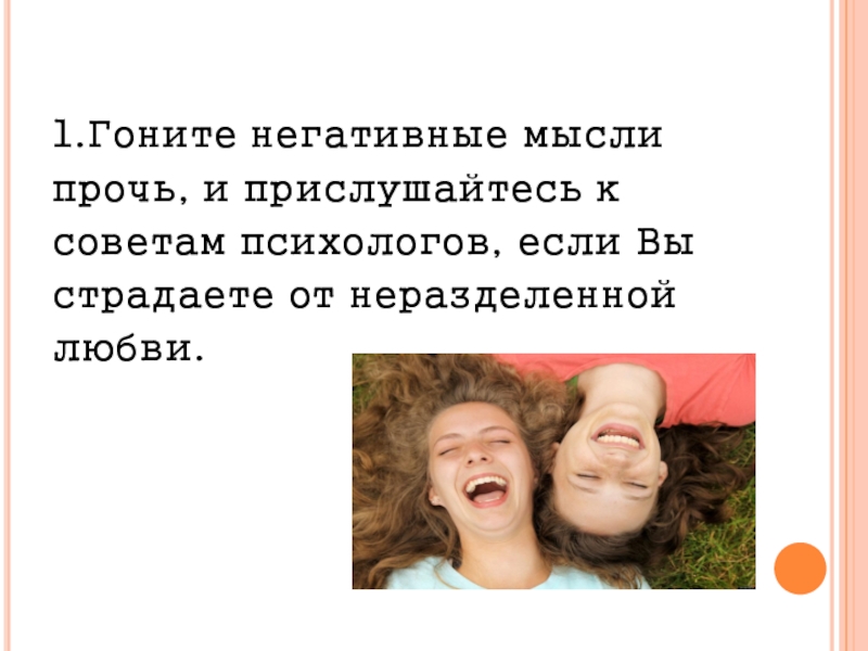 1.Гоните негативные мысли прочь, и прислушайтесь к советам психологов, если Вы страдаете от неразделенной любви.