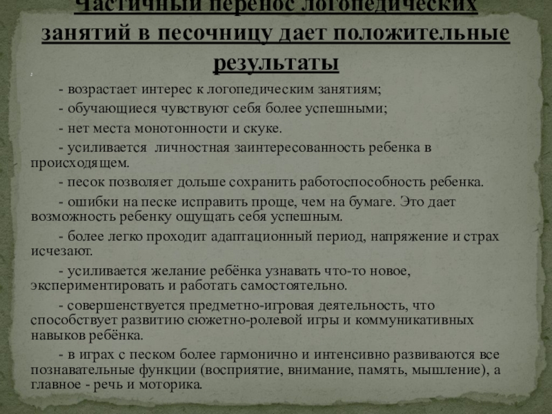 Частичный перенос логопедических занятий в песочницу дает положительные результаты