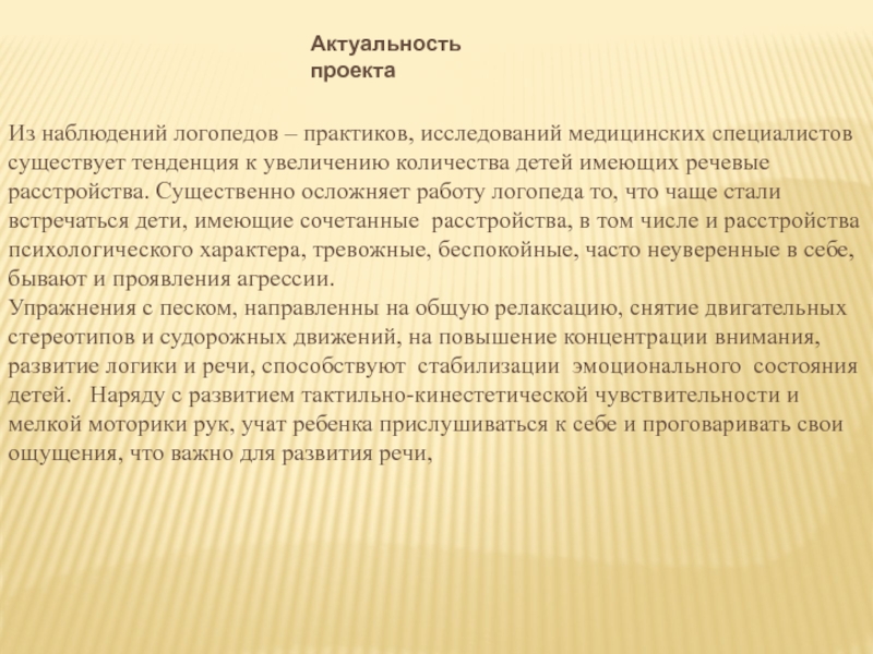 Предмет исследования система упражнений по использованию песочной терапии в работе логопеда.