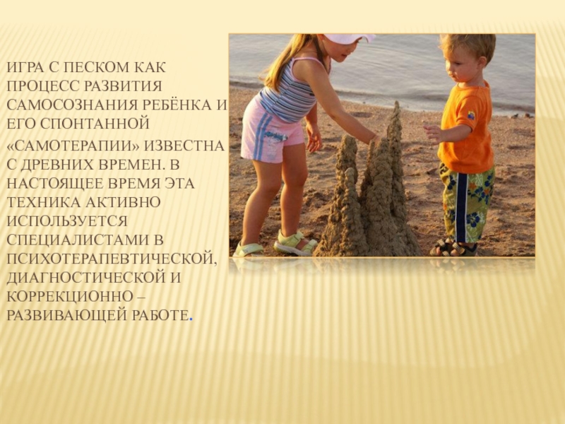 Слайд 2ИГРА С ПЕСКОМ КАК ПРОЦЕСС РАЗВИТИЯ САМОСОЗНАНИЯ РЕБЁНКА И ЕГО СПОНТАННОЙ