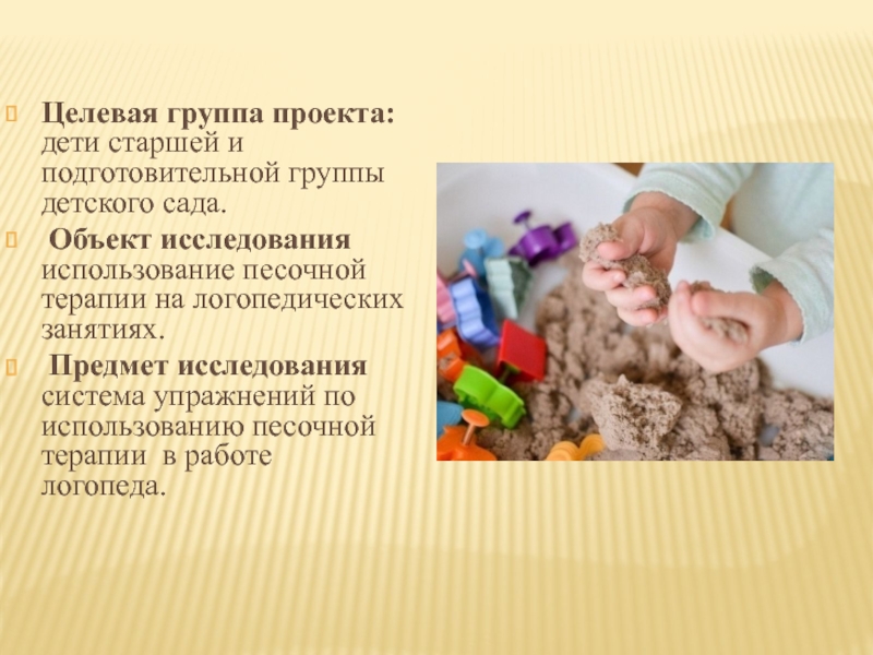 Объект исследования использование песочной терапии на логопедических занятиях.