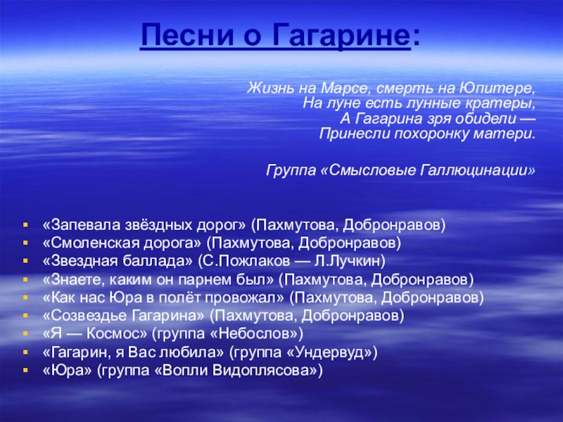 «Созвездье Гагарина» (Пахмутова, Добронравов)