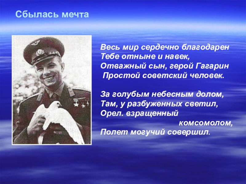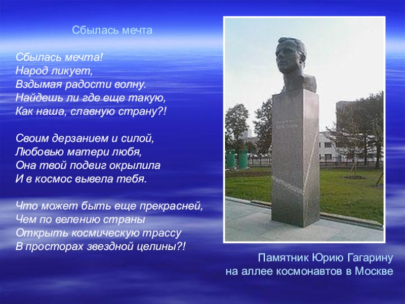 первым покорителем космоса. Весь мир помнит и знает его, чтит и увековечивает его память.