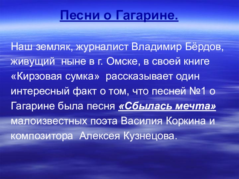 «Как нас Юра в полёт провожал» (Пахмутова, Добронравов)