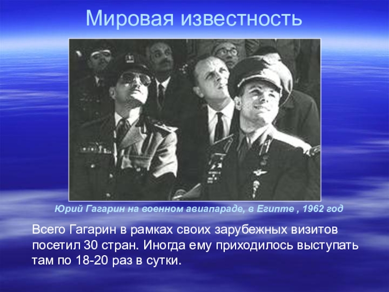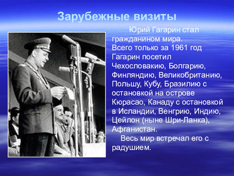 Всего Гагарин в рамках своих зарубежных визитов посетил