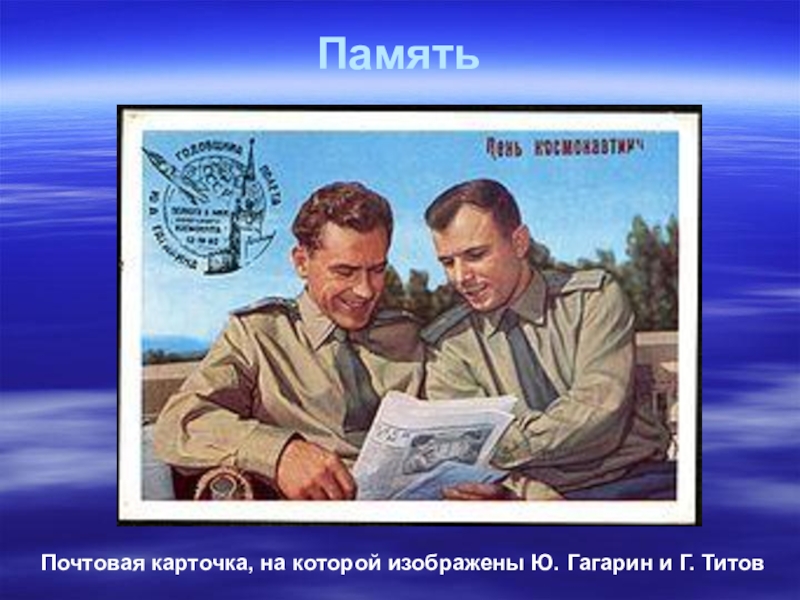 Почтовая карточка, на которой изображены Ю. Гагарин и Г. Титов