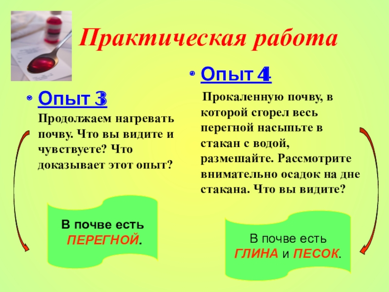 Прокаленную почву, в которой сгорел весь перегной насыпьте в стакан с водой, размешайте. Рассмотрите внимательно осадок на дне стакана. Что вы видите?