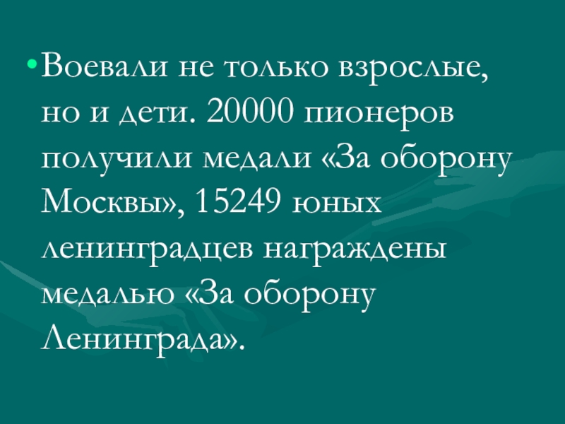 Слайд 5Воевали не только взрослые, но и дети. 20000 пионеров получили медали