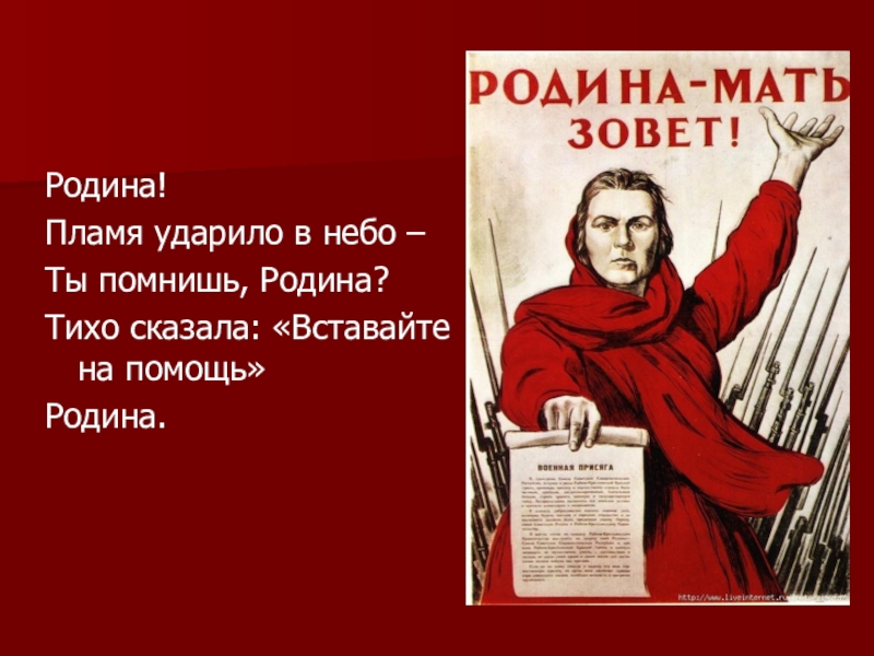 Германии. И чтобы не оказаться в фашистском рабстве, ради спасения Родины, народ вступил в смертный бой с коварным, жестоким, беспощадным врагом.