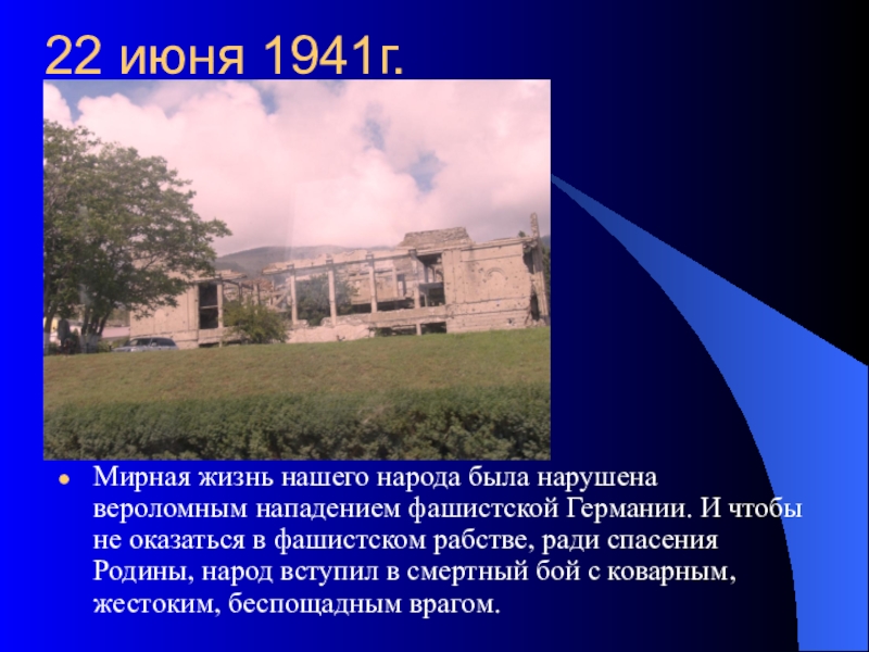 Мирная жизнь нашего народа была нарушена вероломным нападением фашистской