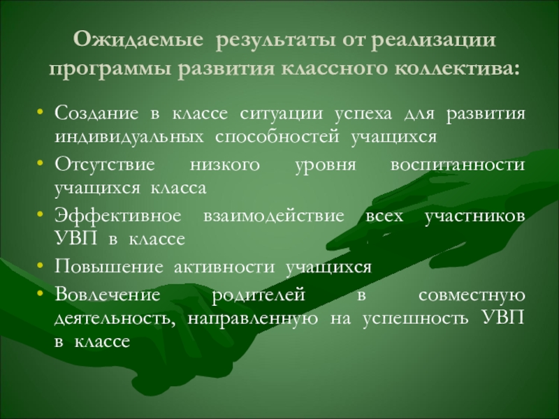 Слайд 7Ожидаемые результаты от реализации программы развития классного коллектива: