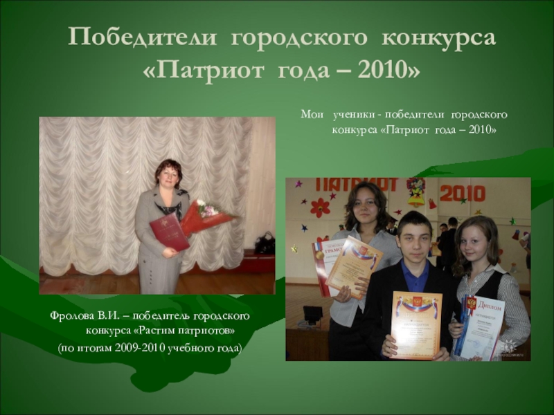 Мои ученики - победители городского конкурса «Патриот года – 2010»