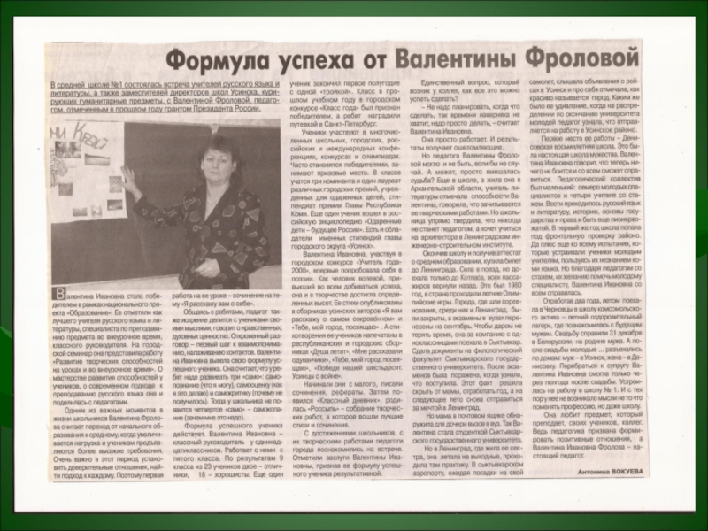 Фролова Валентина Ивановна – учитель русского языка и
