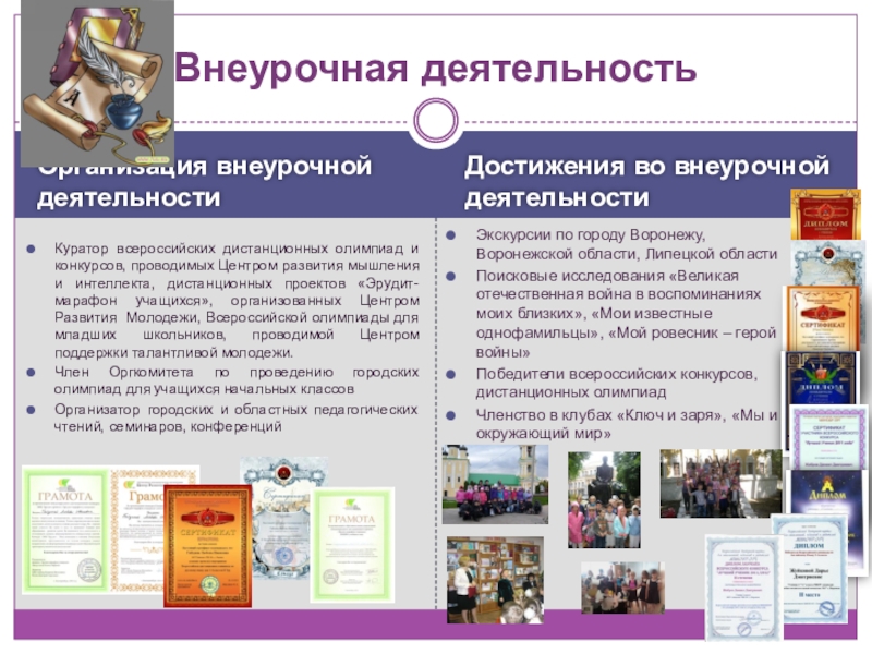 проводимых Центром развития мышления и интеллекта, дистанционных проектов «Эрудит-марафон учащихся», организованных Центром Развития Молодежи, Всероссийской олимпиады для младших школьников, проводимой Центром поддержки талантливой молодежи.