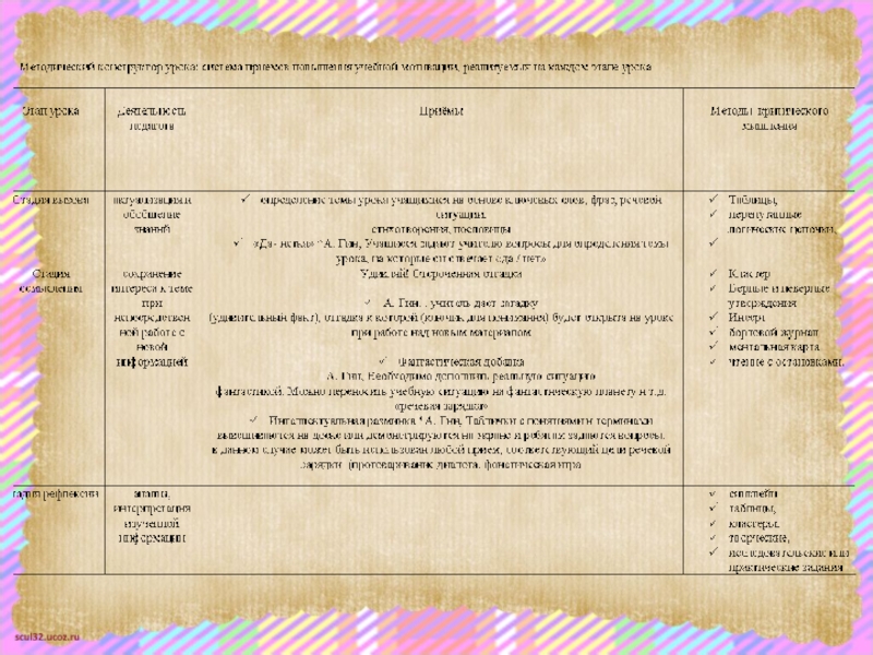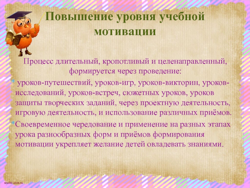 Своевременное чередование и применение на разных этапах урока разнообразных форм и приёмов формирования мотивации укрепляет желание детей овладевать знаниями.