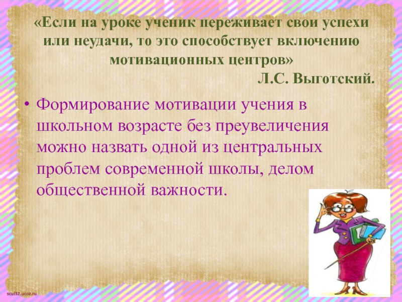 Слайд 2«Если на уроке ученик переживает свои успехи или неудачи, то это