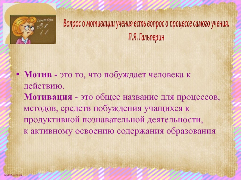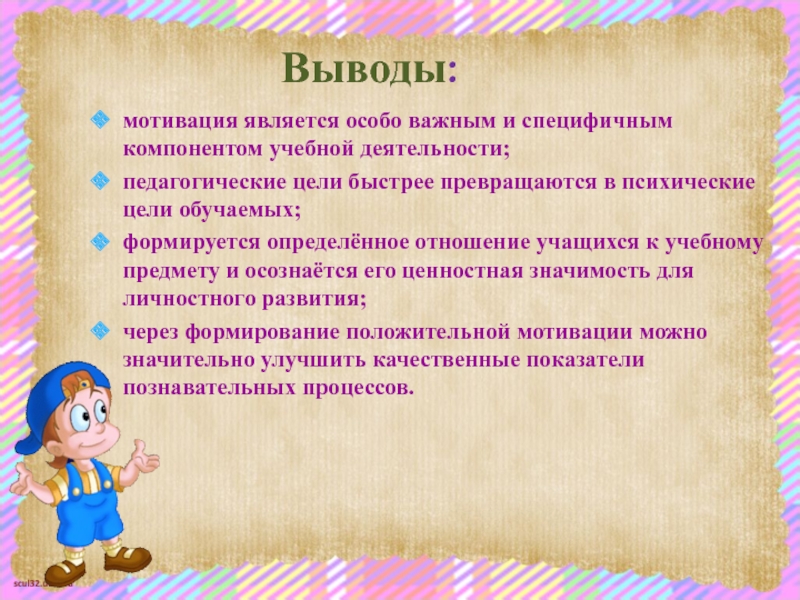 мотивация является особо важным и специфичным компонентом учебной деятельности;