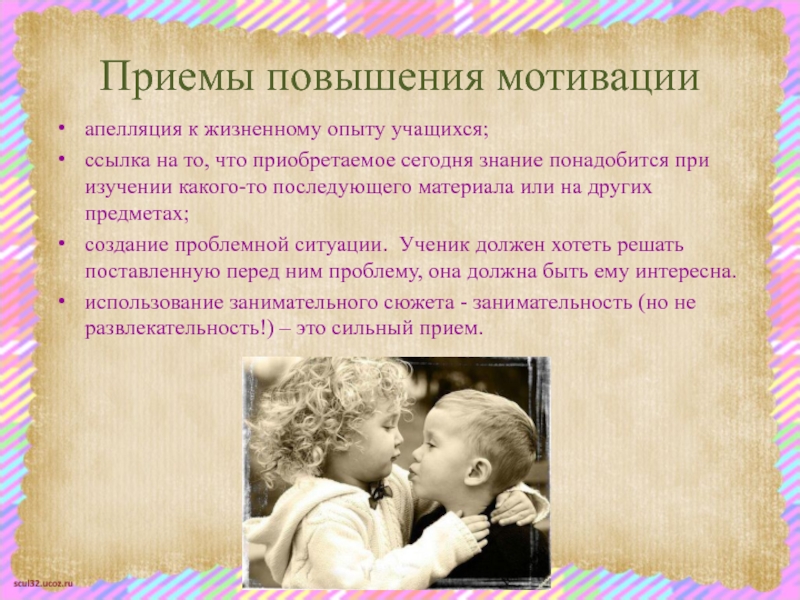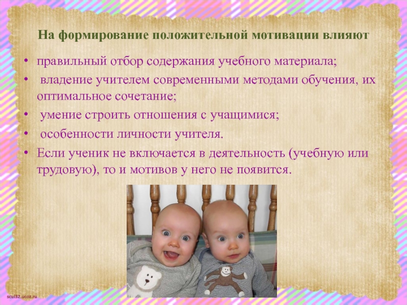 Очень важен такой фактор формирования положительной мотивации, о котором нельзя не