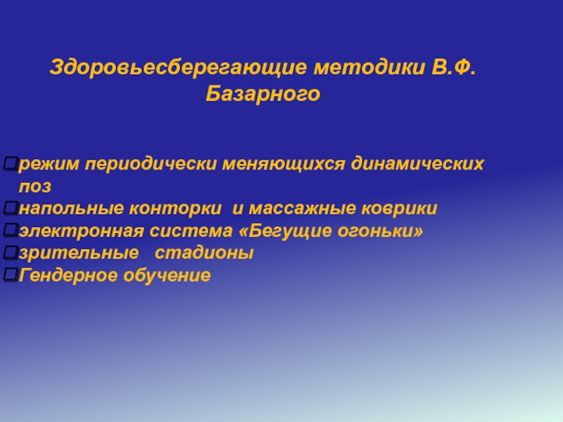 Здоровьесберегающие методики В.Ф.Базарного в школе