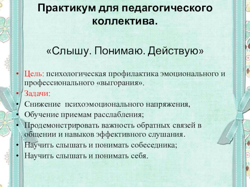 Слайд 3Практикум для педагогического коллектива.