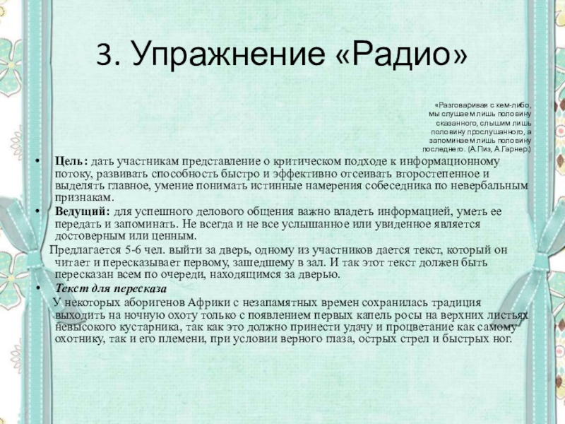 Слайд 93. Упражнение «Радио»